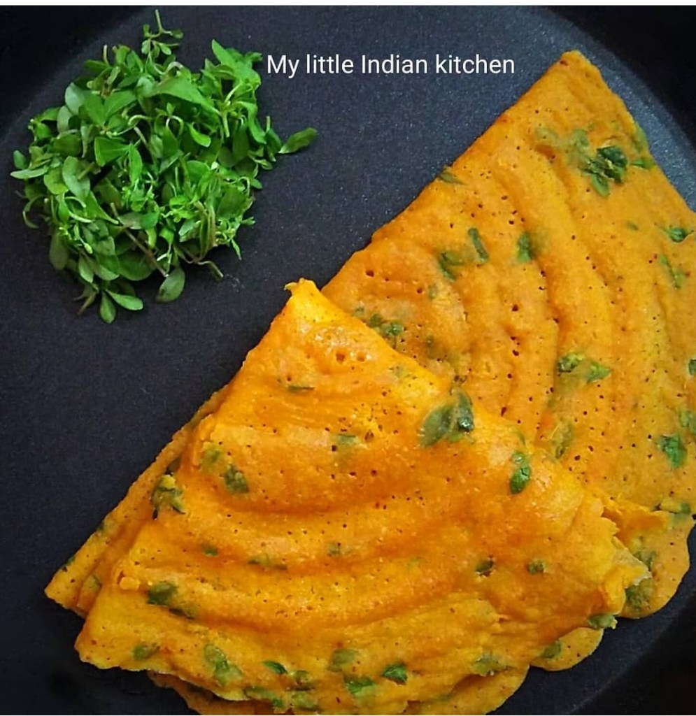 Koduvi polo or dosa is an authentic konkani style breakfast recipe. This dosa is prepared with batter made of rice, coconut and red chilies. The main ingredient in this dosa is ‘Koduvi’ which is basically a small, slightly bitter green leafy vegetable.