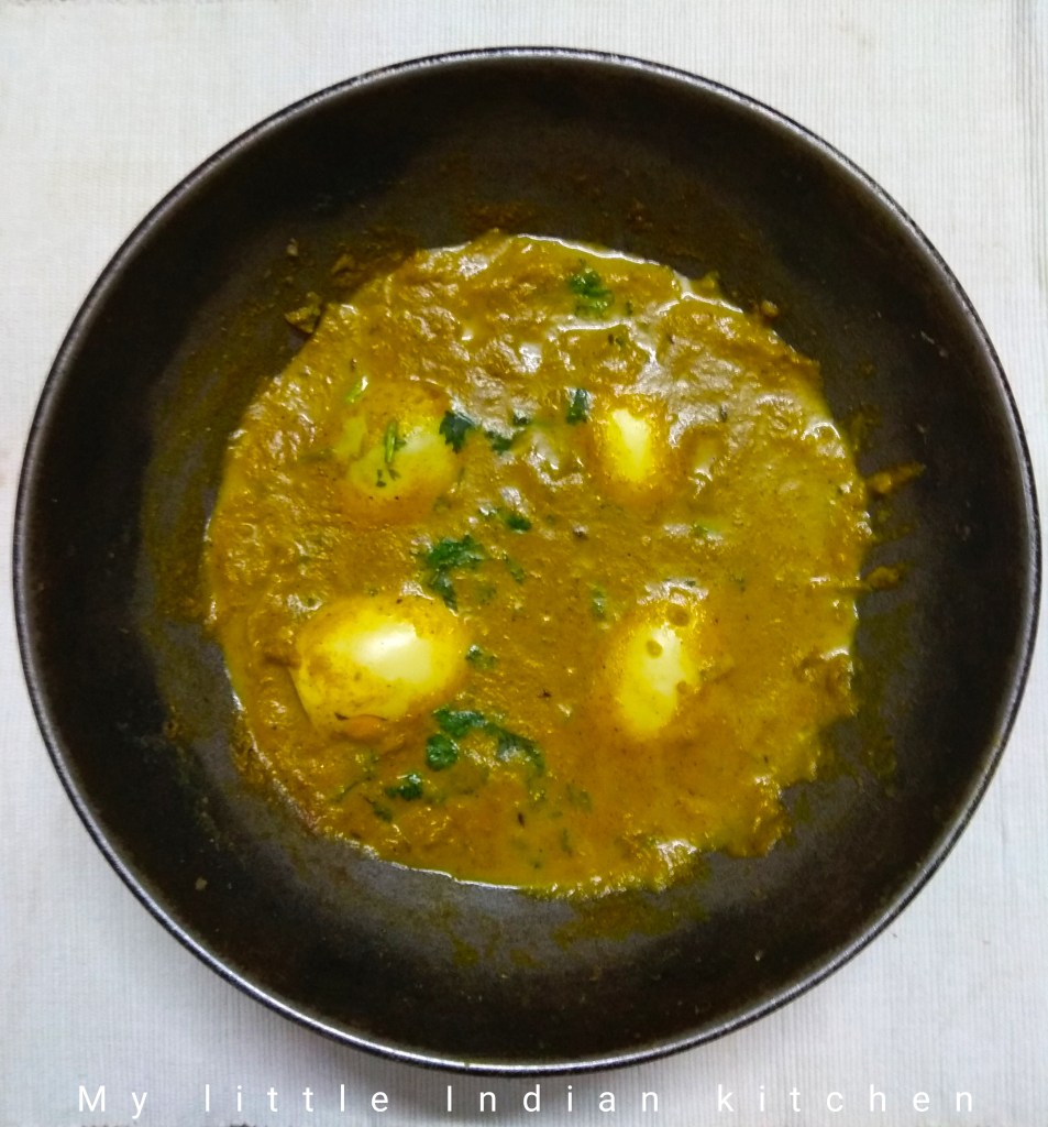 - Add milk to it and mix well. Also add egg halves to the gravy and pour the gravy slightly over the eggs. Cover and cook the eggs on a low flame for 3 minutes.