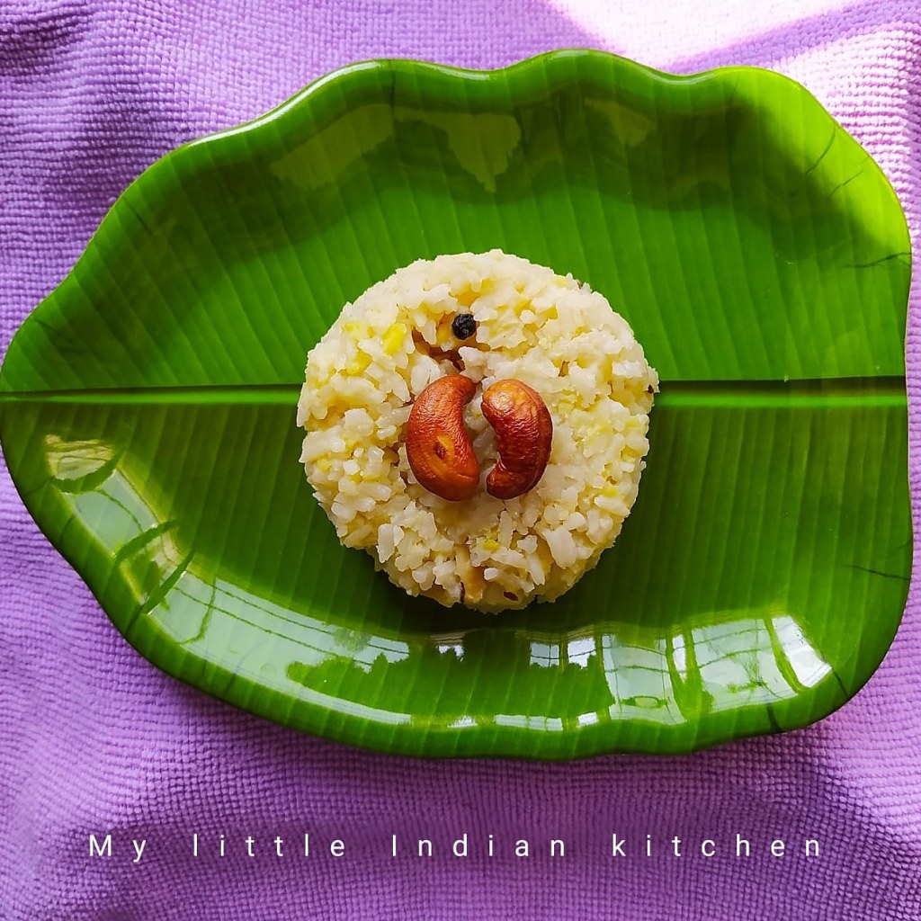 Ven Pongal is a savory south Indian breakfast food which is made using rice and yellow moong dal, tempered with cumin seeds, black peppercorns, ginger, curry leaves and ghee and garnished with cashew nuts.