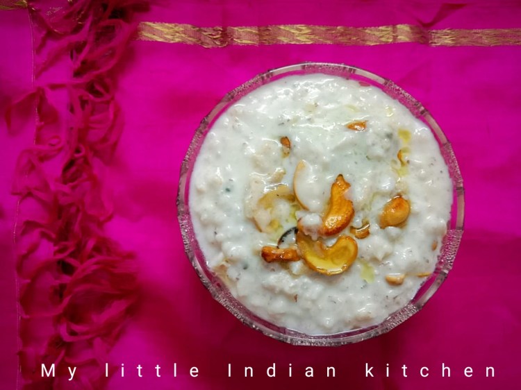 Spicy yogurt with your choice of vegetable. It can be okra, cucumber or even bitter gourd. Add it to your rice and parippu, and see how you lick your fingers in the end.