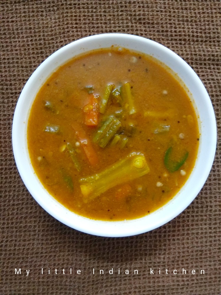 Mor curry often called Mor Kuzhambu or Pulissery is a savoury side dish made of buttermilk and served with rice and dry spicy vegetable dish.